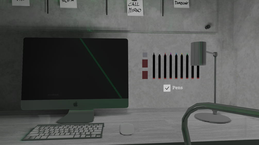 UI Settings = Bloom Slider > Video player > Colliders Toggle > Darkness Slider > Dust toggle
